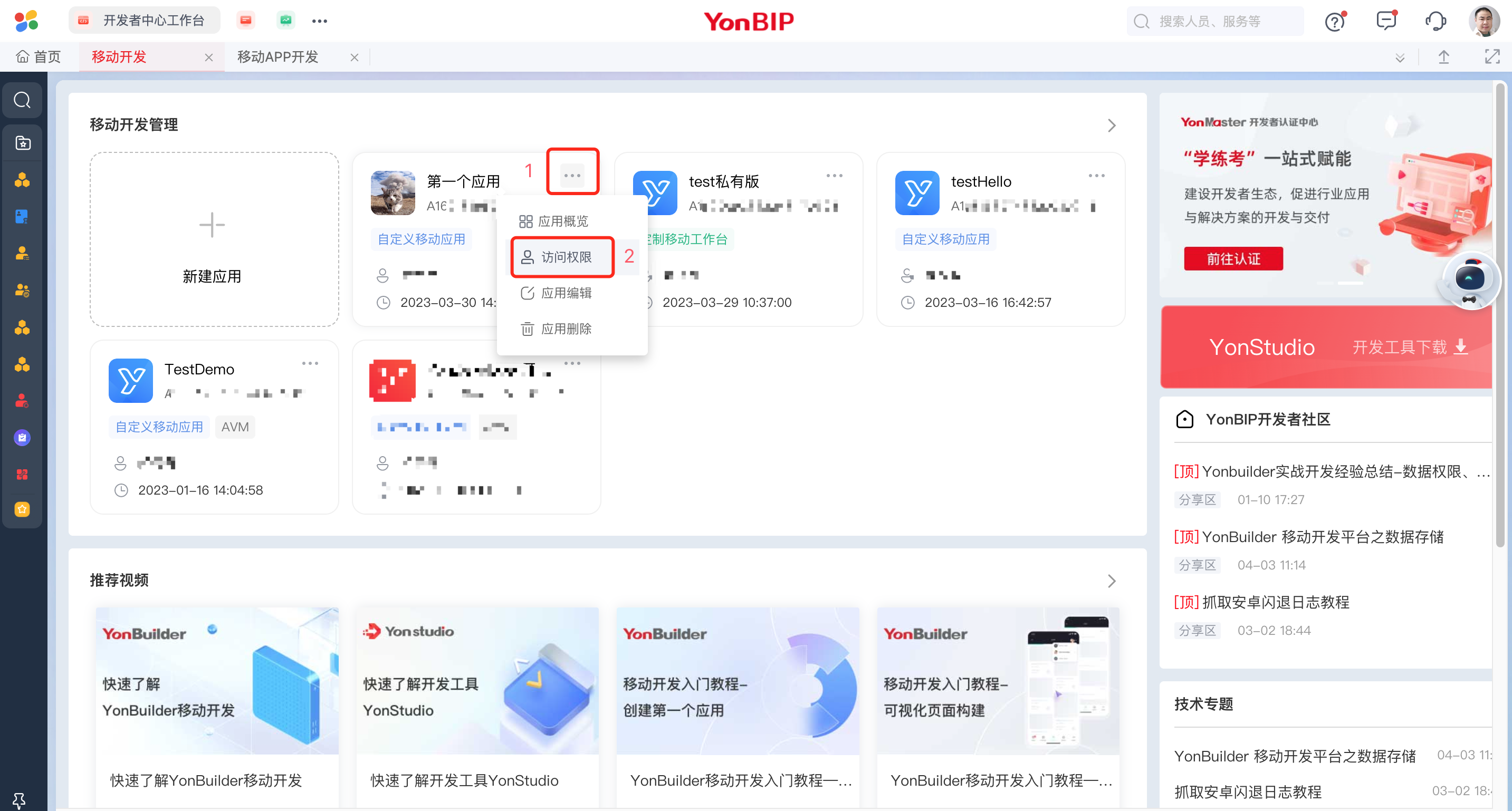 PS1: 正常访问路径,点击风车导航图标(左上角)-选择「云平台」-「低代码开发平台」- 「移动开发服务」-「移动APP开发」