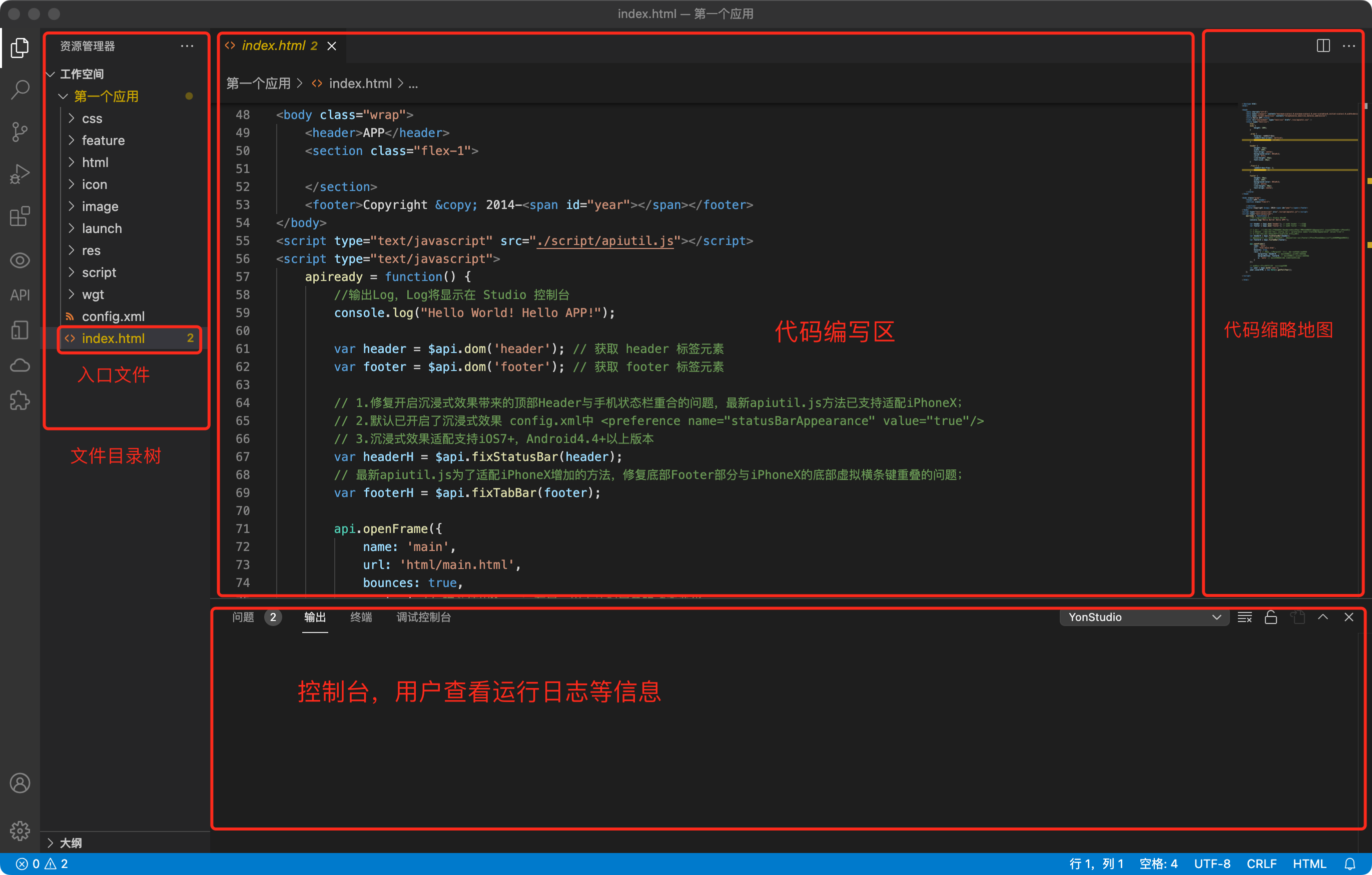 YonStudio开发工具界面的大致功能,可见下图,基本还是沿用了 VsCode 的编程风格