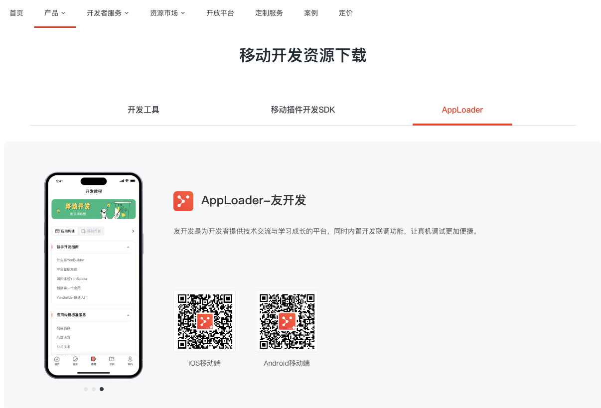 YonBuilder移动开发的真机调试,需要预先安装一个专门用来配套调试的App应用,这个用来调试的App应用,官方名称定义为AppLoader。