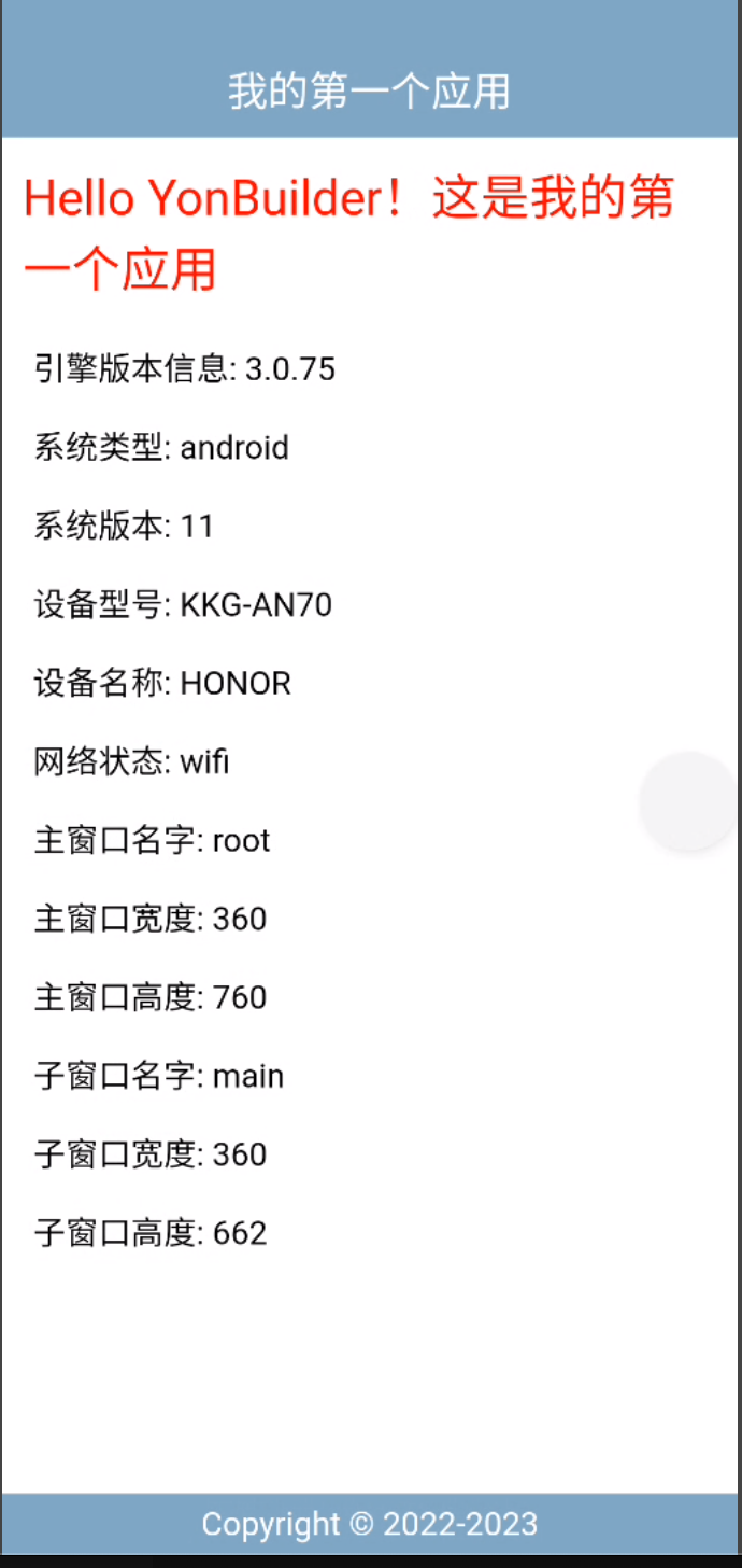 至此,我们就完成了真机同步的操作,即在YonStudio开发工具内修改代码,然后将最新代码同步到手机端并实时刷新预览最新修改效果的整个流程。