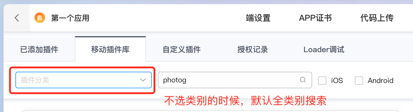 PS2: 此处「移动插件库」页面的搜索栏,默认是支持全类别搜索的。