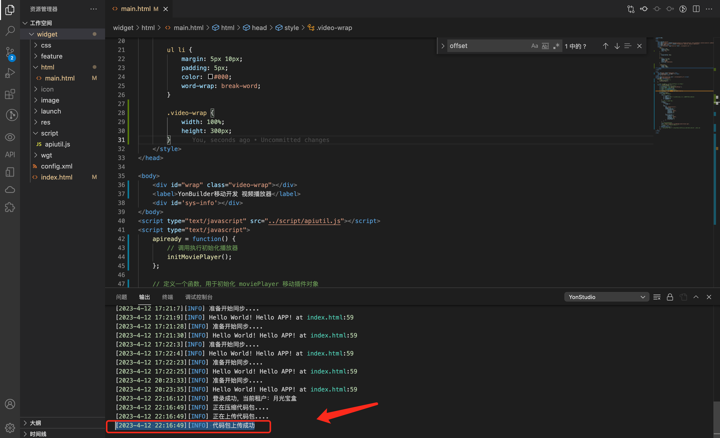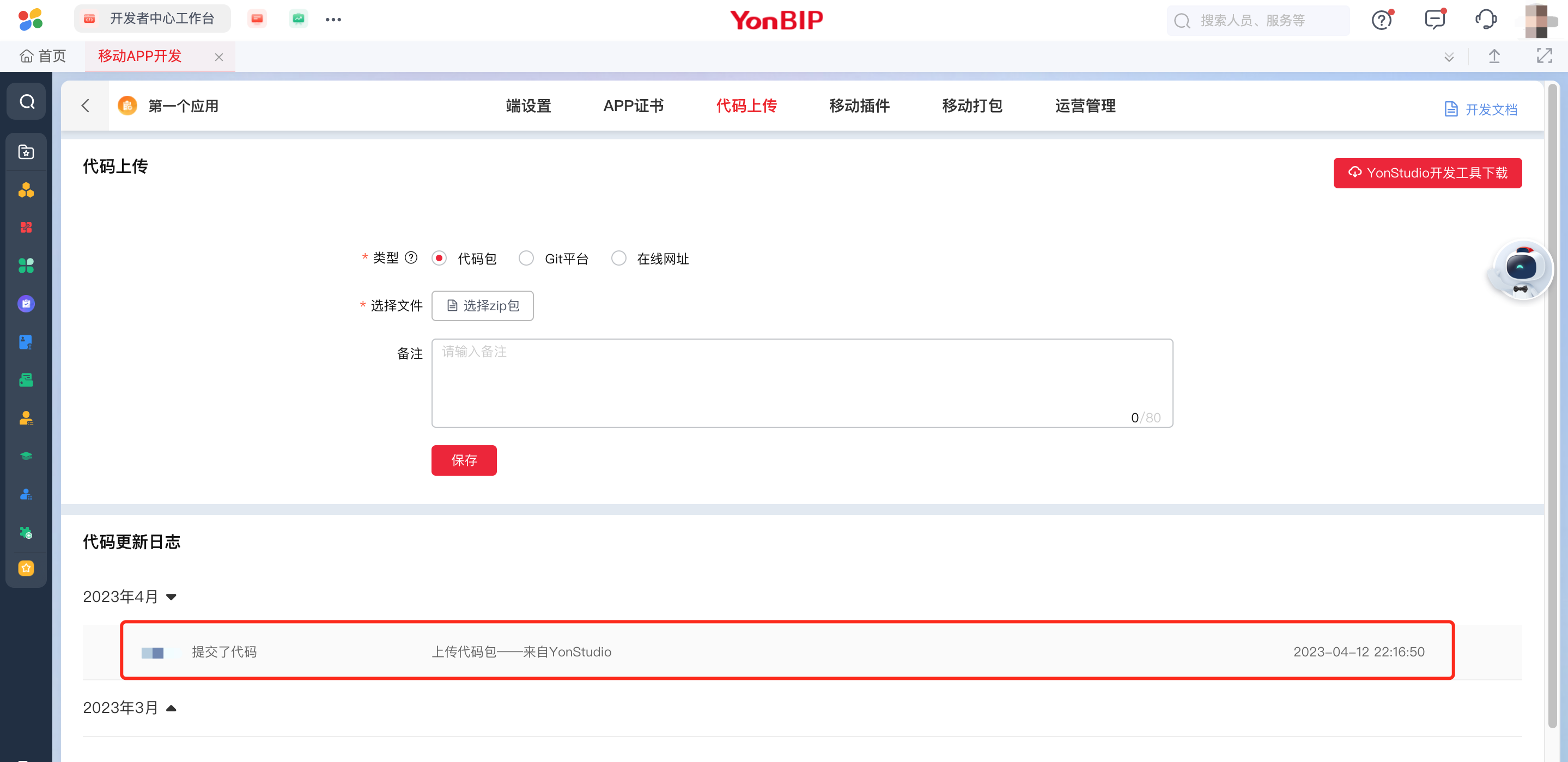 上传完成后,YonStudio开发工具的控制台会有日志提示。
