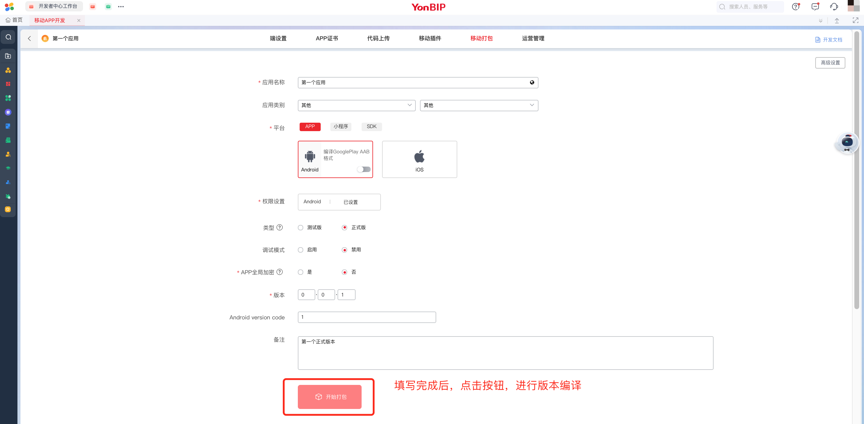 PS1: 注意这里生成的安装包文件下载是有有效期的,所以对于正式商用版本,建议将安装包下载到本地后,将安装包上传到自己的服务器上,或者直接上架安装的应用市场。