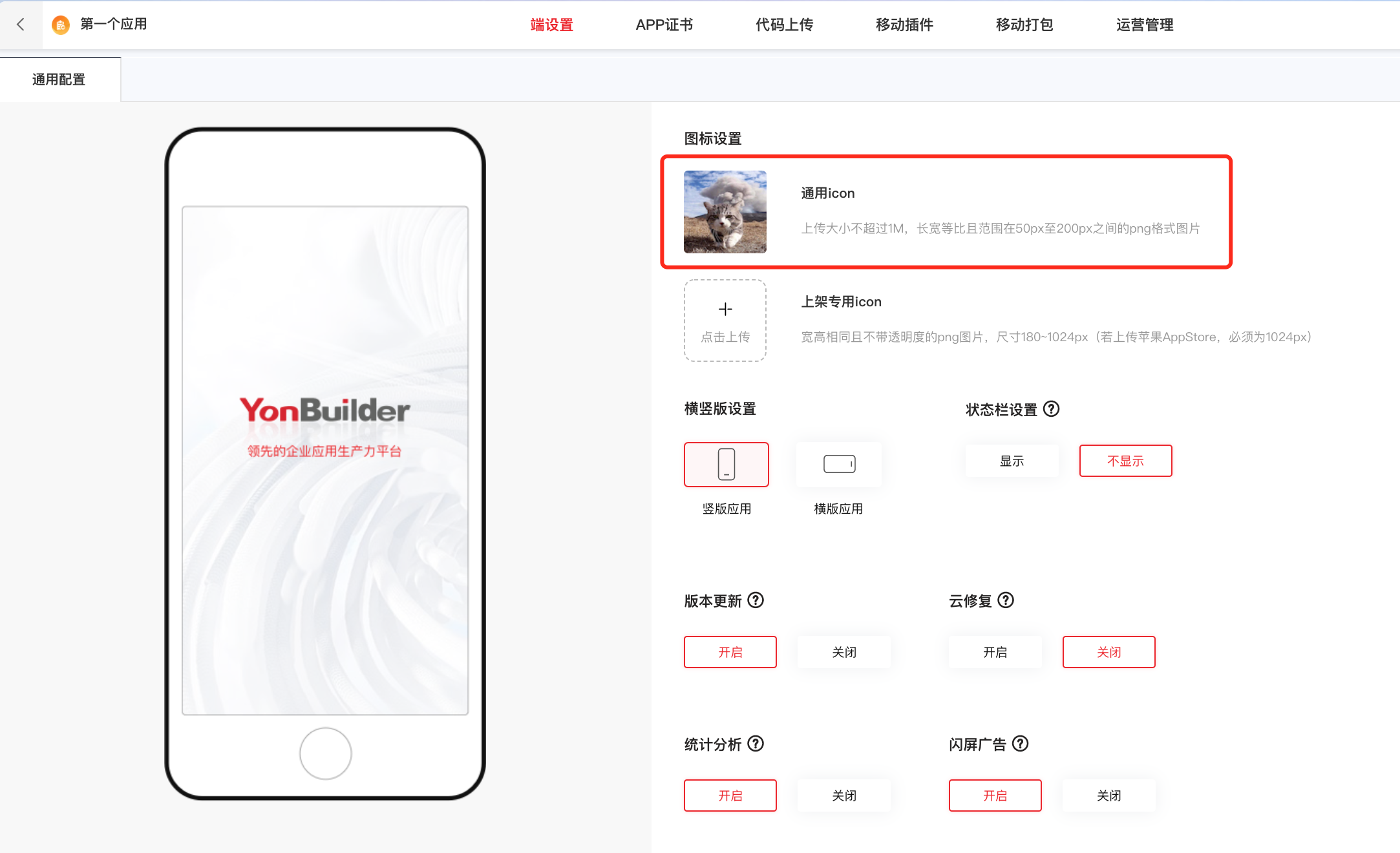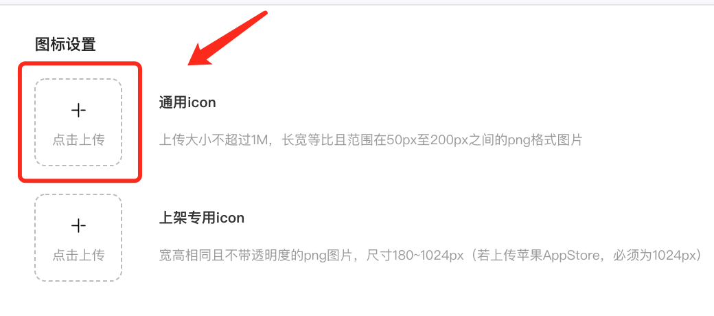 9.1.2 点击「图标设置」选项内的虚线方框按钮,上传icon图标