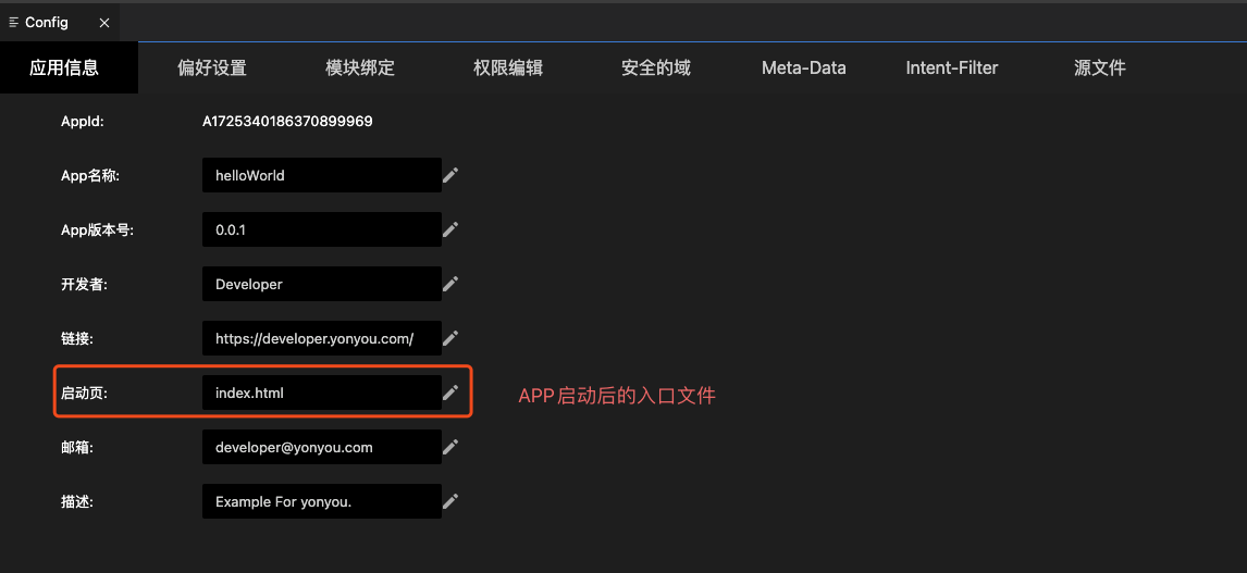 PS: 当我们再github或者gitee等开源仓库下载一个YonBuilder移动开发项目代码时,如果我们想要运行体验一下代码,那么就需要在config.xml中,将appid的值,修改成我们账户下自己的一个应用项目的appid才行,因为通常我们只能运行和调式自己账户下的应用。特别是如果一些项目引用了一些移动插件,那么我们就需要在云端控制台自己的项目中,同步添加这些移动插件才OK,否则运行就会报错。