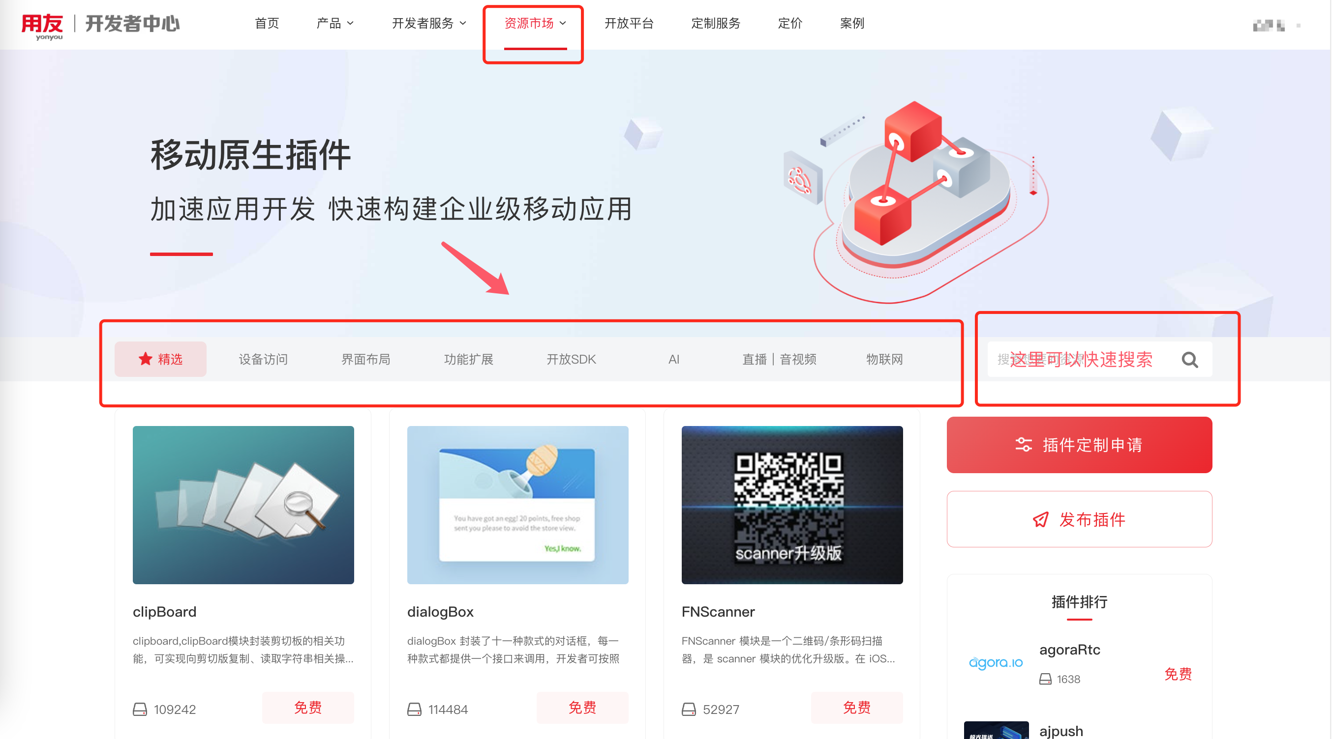 未登录情况下在「资源市场」下查看移动插件