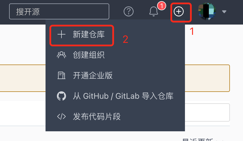 登录Gitee——码云平台,创建账户这类基本操作这里就不做展示了,我们直接从创建仓库开始。