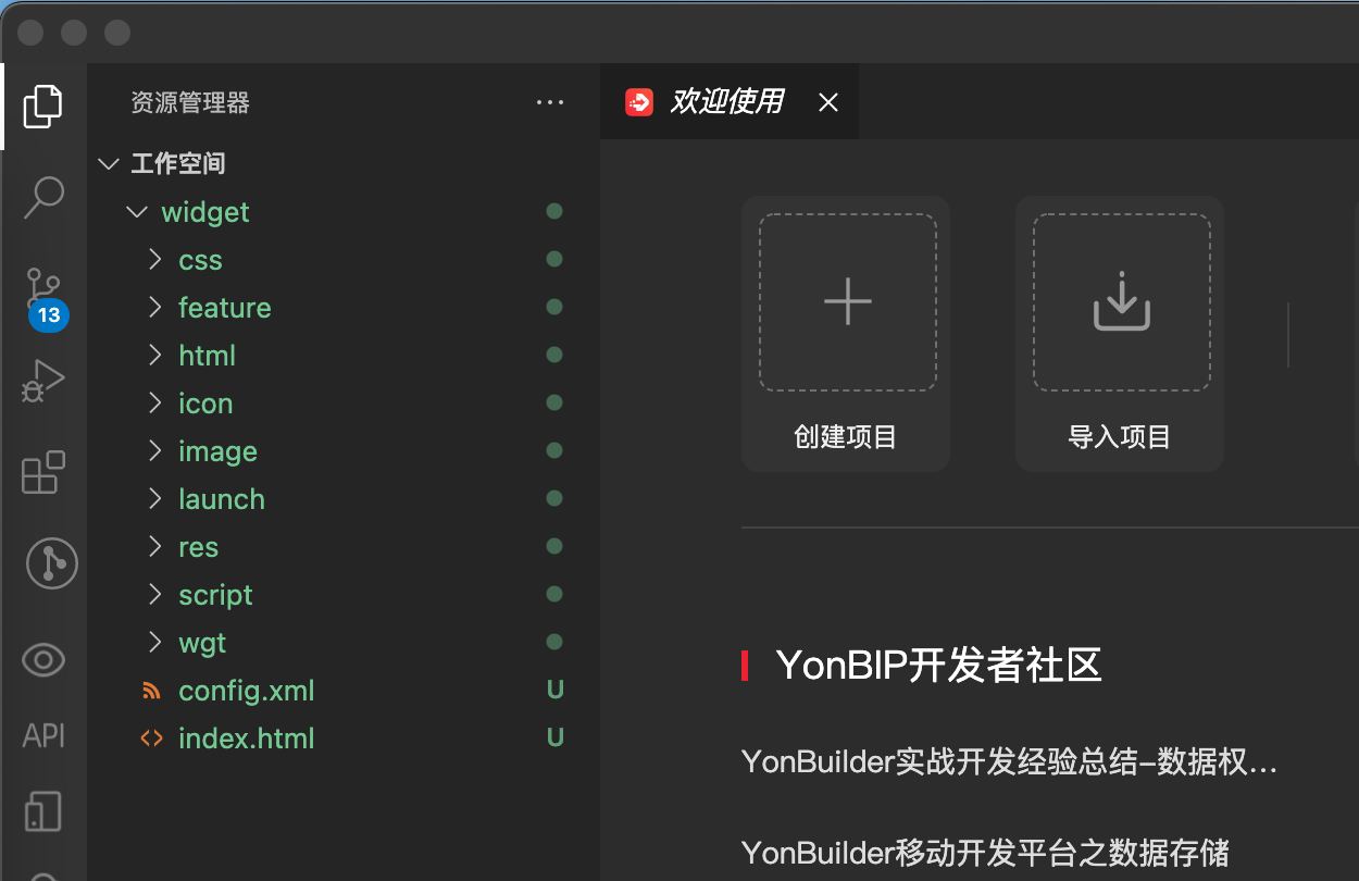 2.2.3 使用YonStudio开发工具,打开widget文件夹进行项目开发