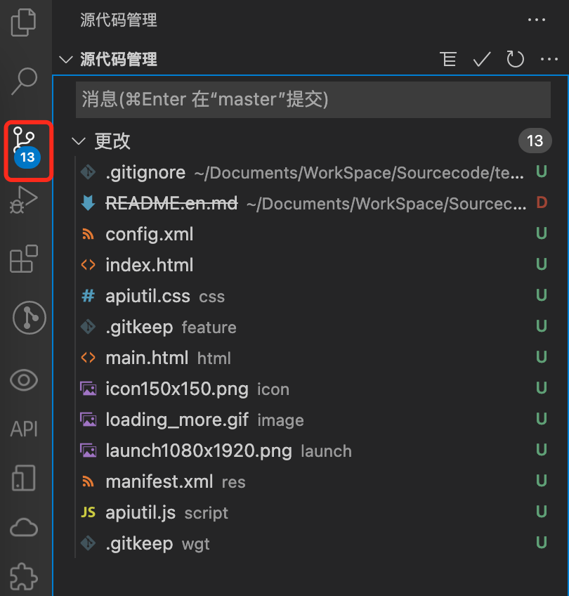 因为 YonStudio 开发工具基于 VSCode 内核,所以我们可以切换到「源代码管理」面板,进行项目的 Git 操作。